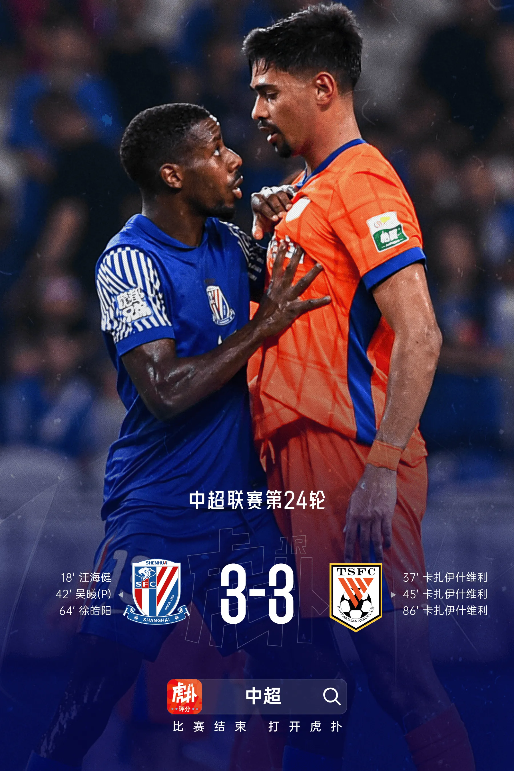 虎扑09月12日讯 中超联赛第24轮,上海申花3-3山东泰山,赛后上海申花球员徐皓阳接受媒体采访。