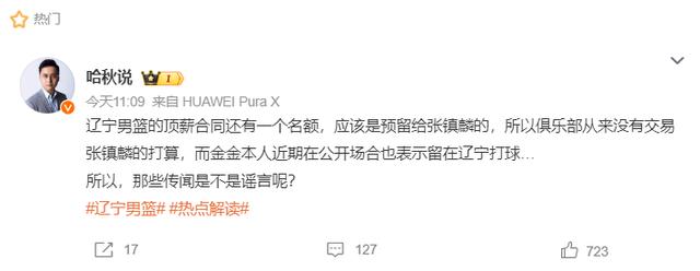 辽宁男篮多位媒体人都已经发声回怼,比如哈秋说:辽宁男篮还留了一个顶薪名额,应该就是给张镇麟留的,俱乐部从来没有交易张镇麟的打算。近期,张镇麟本人也在公开场合表示想要留在辽宁打球,所以,那些传闻是不是谣言?