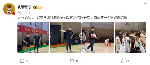 媒体人也透露,张镇麟已经从海外康复训练回国,他在辽宁举办了个人首个训练营,6天价格7899元,训练营聘请了两位有着NBA和CBA职业背景的训练师Coach Gift和Coach Russell,还有两位特约教练OJ-梅奥、郭凯伦。